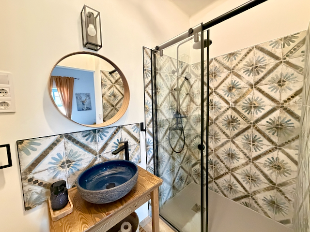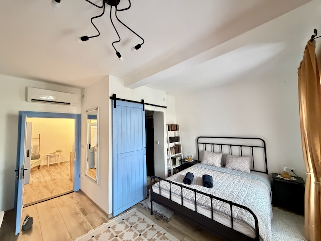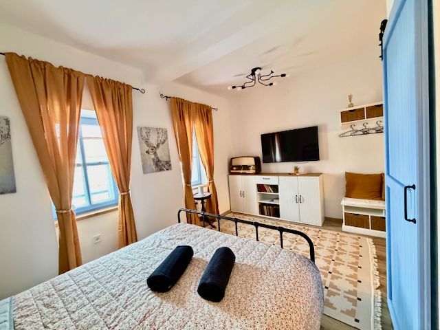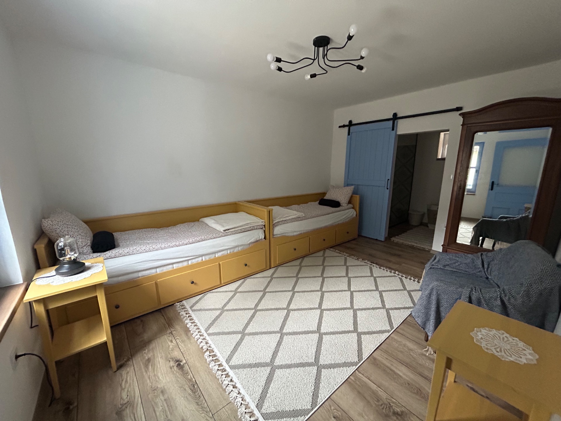 Hangulatos, franciaágyas lakrész két fő részére, saját fürdőszobával és nyugodt, otthonos légkörrel. Ideális pároknak vagy egyéni pihenéshez. A közös, jól felszerelt konyhát és étkezőt a másik apartmannal megosztva lehet használni – tökéletes hely egy nyugodt reggelihez vagy egy pohár bor melletti esti beszélgetéshez. A ház természetközeli környezete és meghitt hangulata garantálja a feltöltődést és a békés kikapcsolódást.