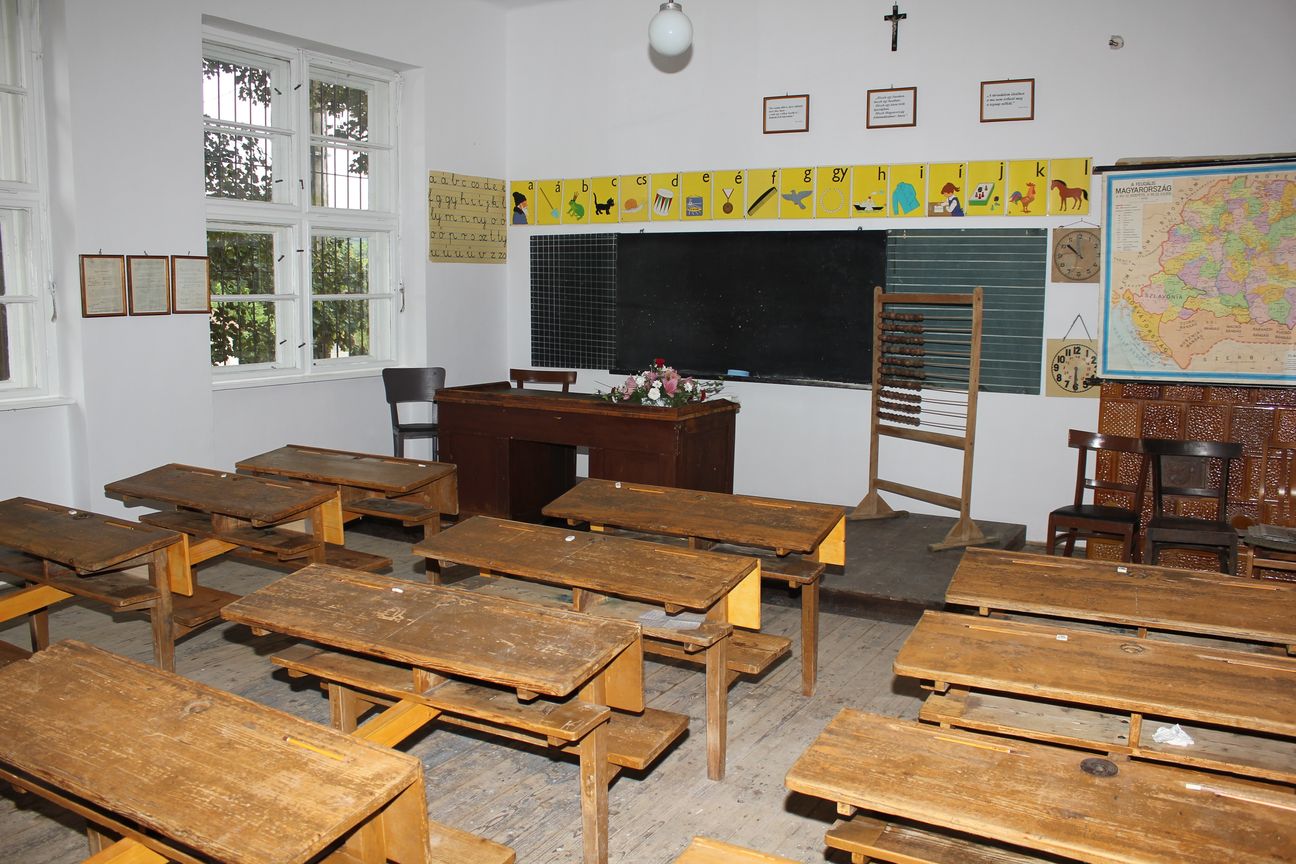 A falusi iskolaépület ma különleges értéket őriz: a korabeli padok, tanári katedra, tintatartós padok és abakusz mind egy múltbéli tanóra hangulatát idézik meg.